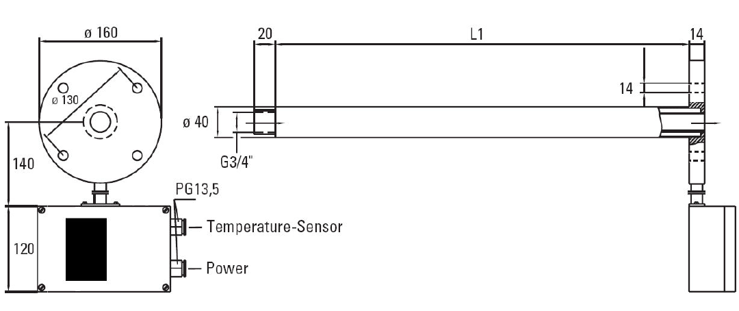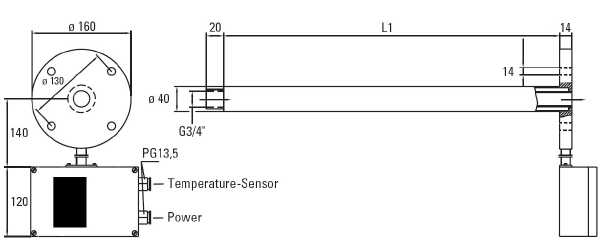 | Długość rurki poboru L1 | 500 mm | 1000 mm | 1500 mm | 2000 mm |