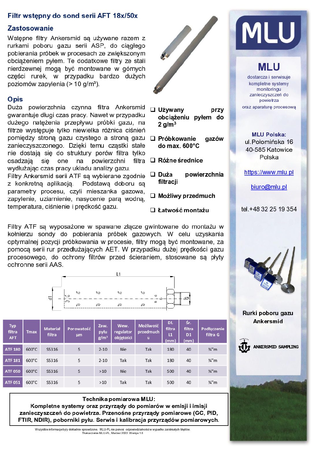 | Długość rurki poboru L1 | 1000 mm (inne dostępne na żądanie) |