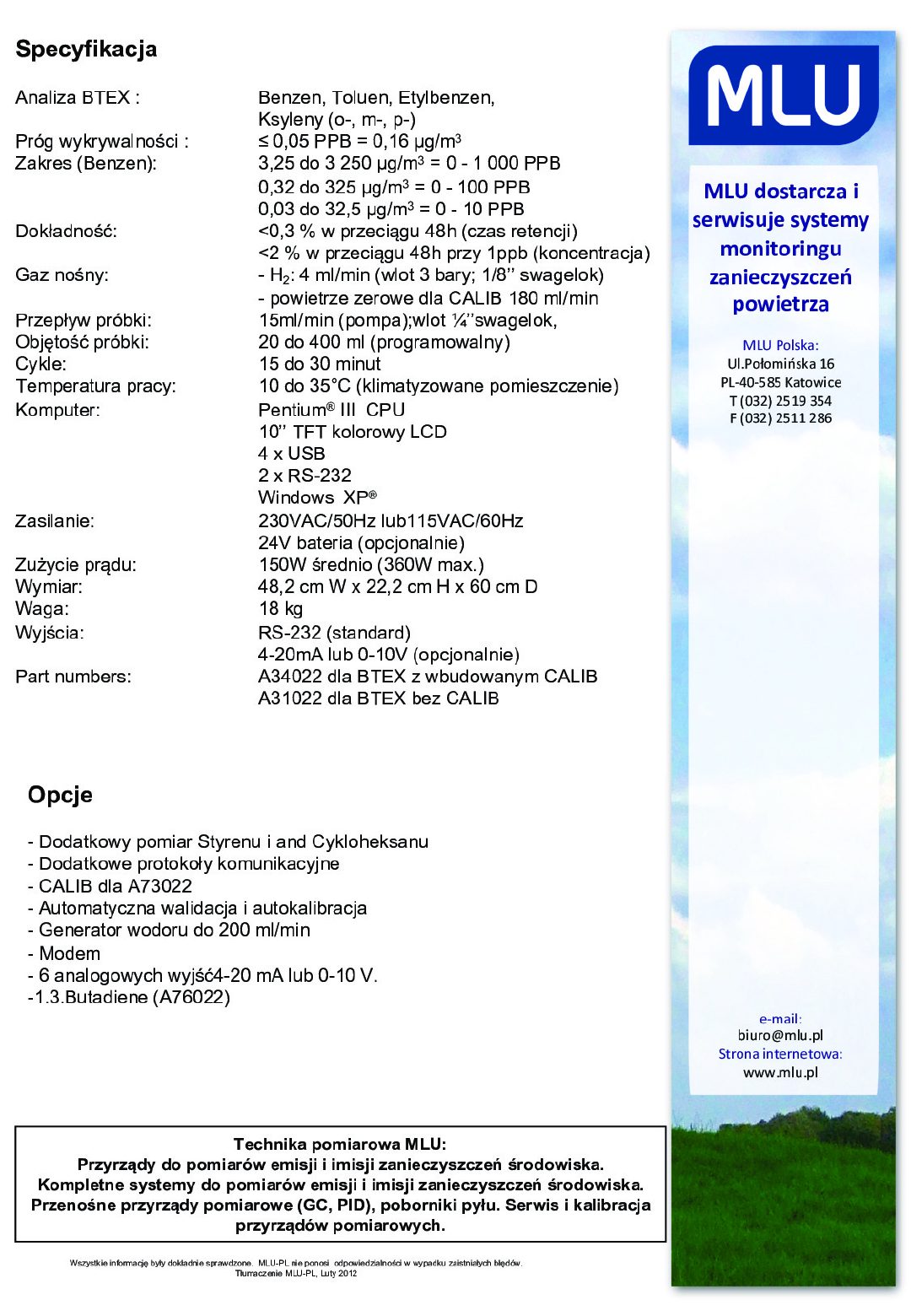 - GC/FID do automatycznego monitoringu BTEX w powietrzu, wodzie i w ziemi