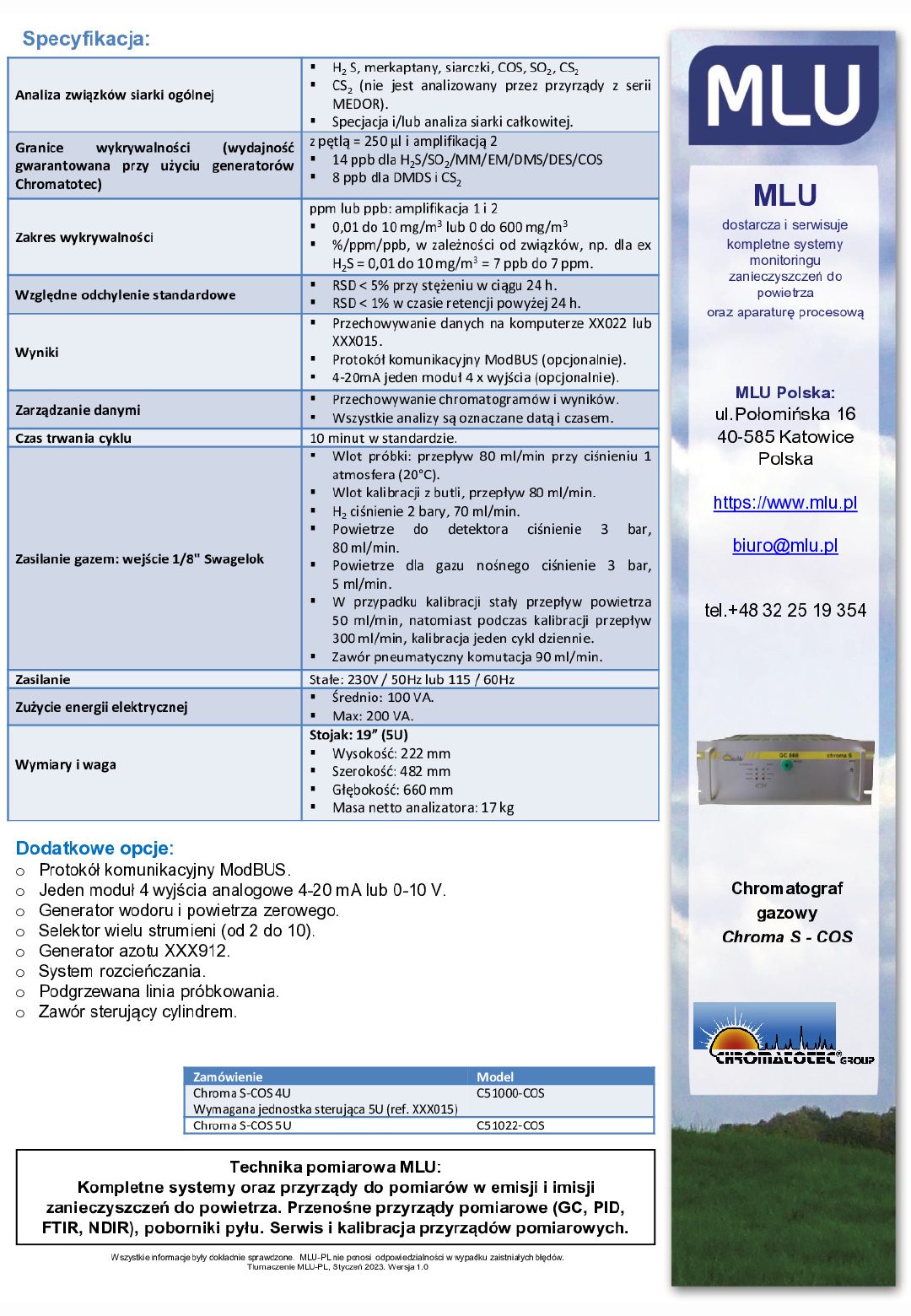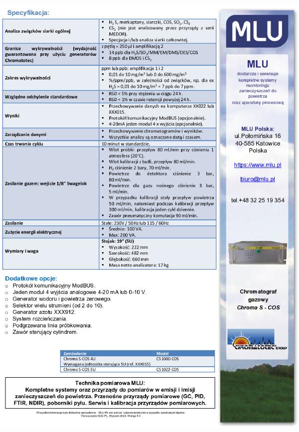Chroma S-COS to w pełni automatyczny, izotermiczny chromatograf gazowy do analizy i monitoringu związków siarki.