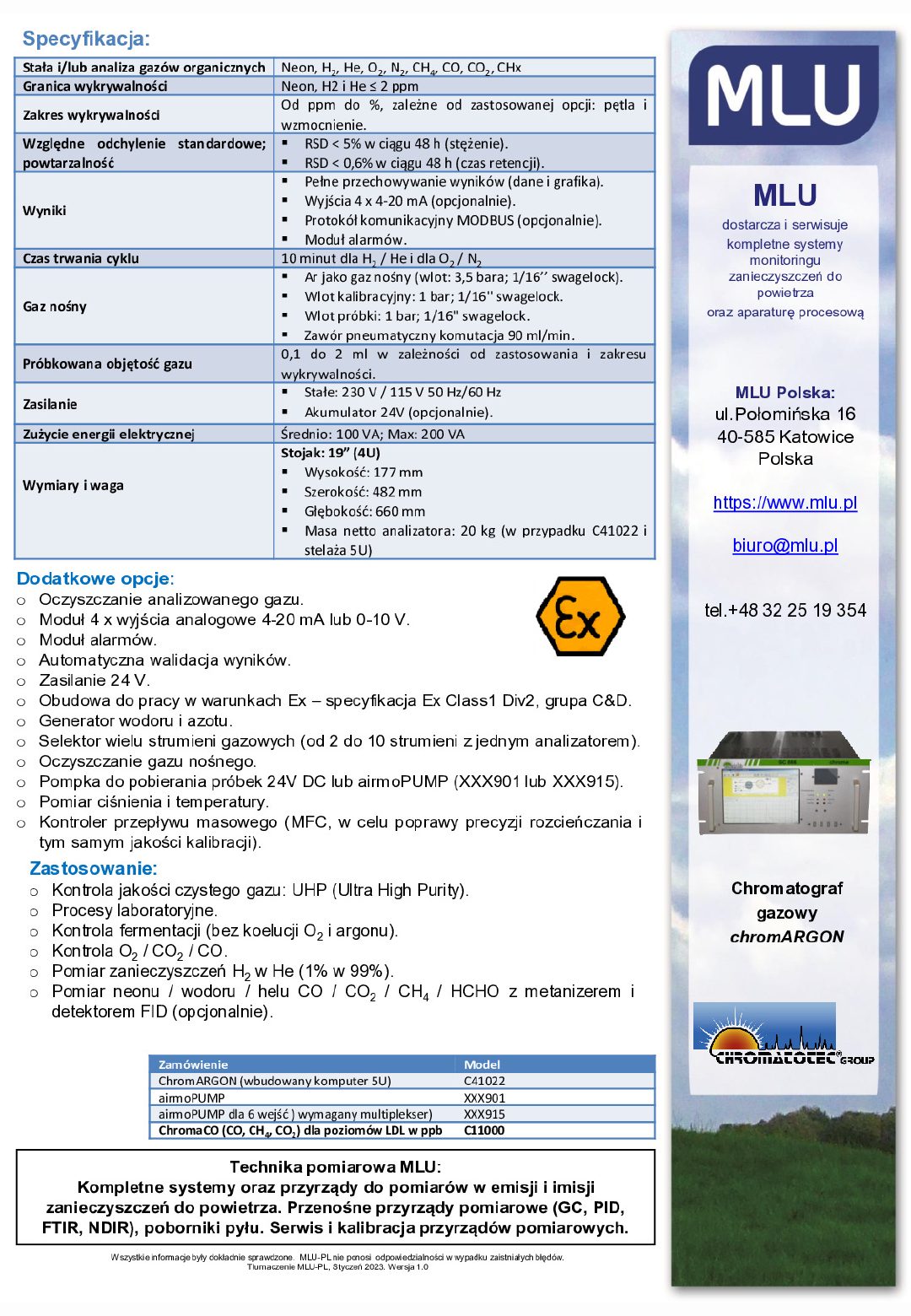| Zakres wykrywalności | Od ppm do %, zależne od zastosowanej opcji: pętla i wzmocnienie. |