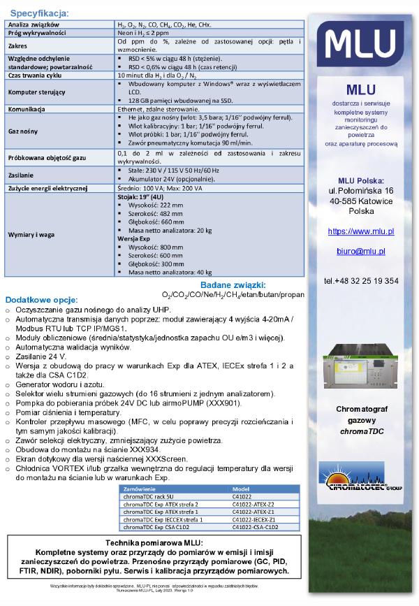 ChromaTDC to automatyczny przemysłowy chromatograf gazowy, posiadający następujące cechy: