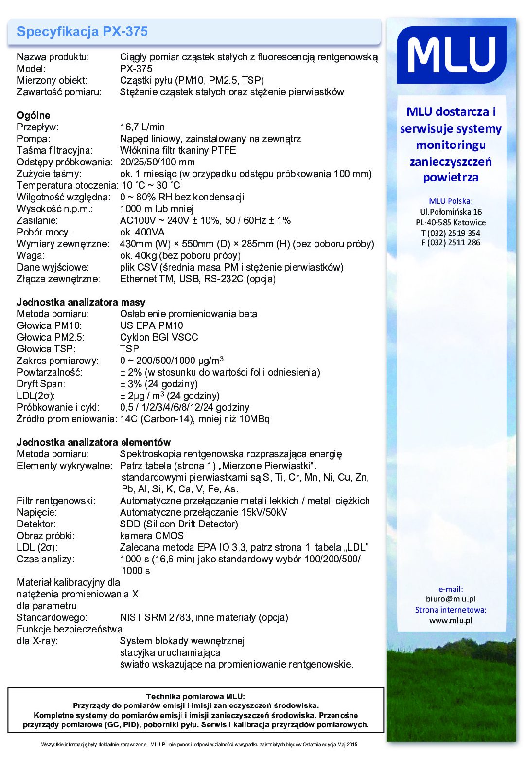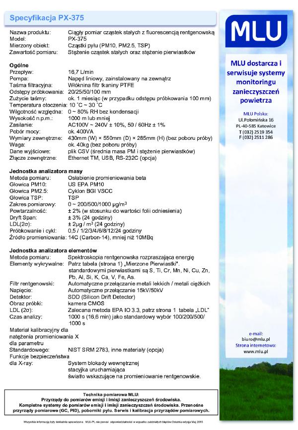 PX-375 Automatyczny ciągły pomiar cząstek stałych z analizą rentgenowską