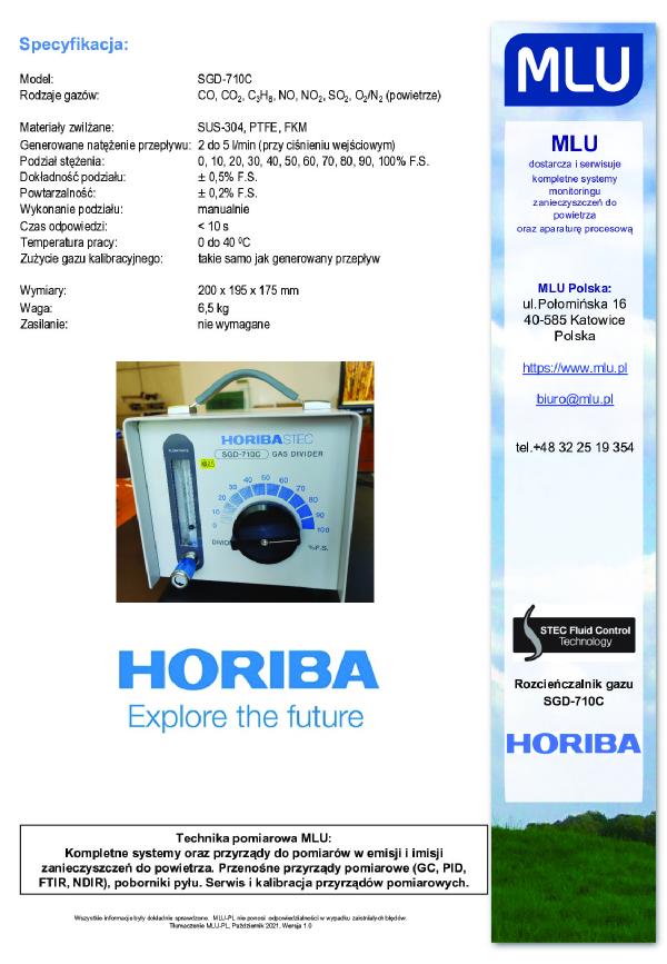 SGD-710C jest przyrządem serii HORIBA STEC Fluid Control Technology, służącym do rozdzielania strumienia gazu kalibracyjnego, używanym w analizach środowiskowych. SGD-710C wykorzystuje metodę mieszania przepływów w kapilarach. Szybkości przepływu gazu kalibracyjnego oraz powietrza są kontrolowane przez kapilary, natomiast stężenie końcowe jest obliczane na podstawie współczynnika szybkości mieszania tych przepływów. Przyrząd wyposażony jest w dziesięć kapilar o tym samym kształcie. Zmiana stężenia końcowego następuje poprzez wybór ilości kapilar, przez które płynie gaz kalibracyjny i powietrze.