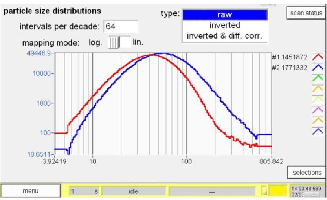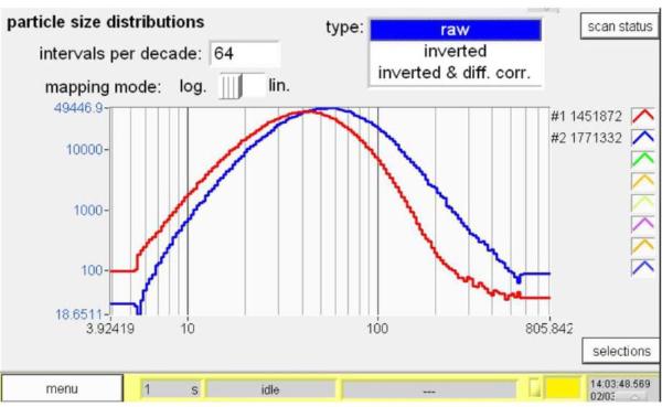 Zoptymalizowane i przetestowane oprogramowanie Palas®, łączy dane uzyskane w trakcie pomiaru tj. napięcie, liczba cząstek itp., co umożliwia uzyskanie rozkładu wielkości cząstek, jak pokazano na rysunku obok.