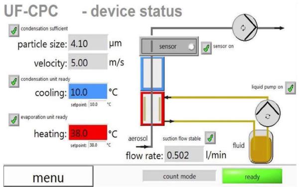 Oprócz liczby cząsteczek, UF-CPC 100 mierzy również wielkość kropelek, dając w ten sposób użytkownikowi dodatkowe informacje dotyczące procesu kondensacji.