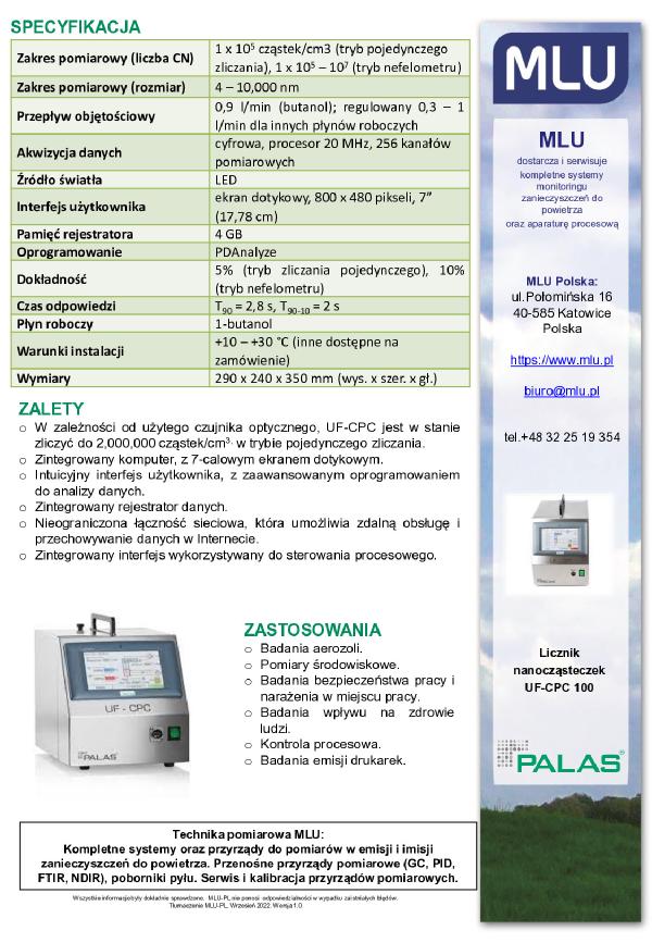 Kondensacyjny licznik nanocząsteczek Palas® UF-CPC 100, to przyrząd CPC służący do wykonywania pomiarów, w zakresie średnich stężeń w środowisku.