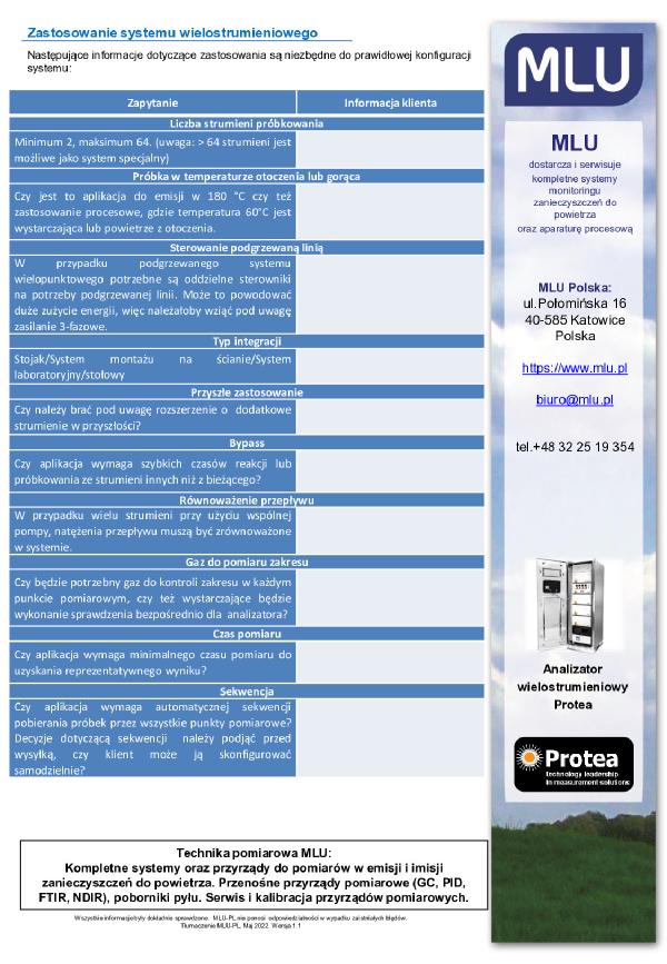 Analizatory Protea FTIR, TDL i QMS są dostępne wraz z opcją kontrolowania wielu punktów pobierania próbek gazu. Wielokrotny punkt próbkowania lub rozwiązanie wielostrumieniowe, umożliwia obniżenie kosztów poprzez wykonywanie pomiarów sekwencyjnych za pomocą jednego analizatora. Oprogramowanie Protea dostarczone z analizatorem daje możliwość ręcznej lub automatycznej kontroli do 64 punktów poboru. Większość z tych opcji jest standardowo dostępna w oprogramowaniu, jednakże firma Protea oferuje również wielostrumieniowe produkty sprzętowe, które w łatwy sposób można łączyć ze sobą.