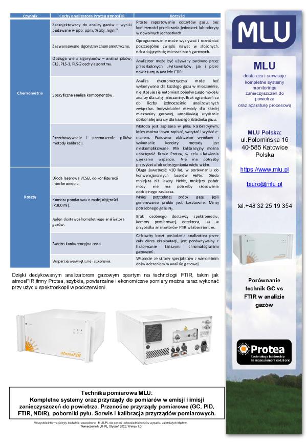 | Czynnik | Cechy analizatora Protea atmosFIR | Korzyści |