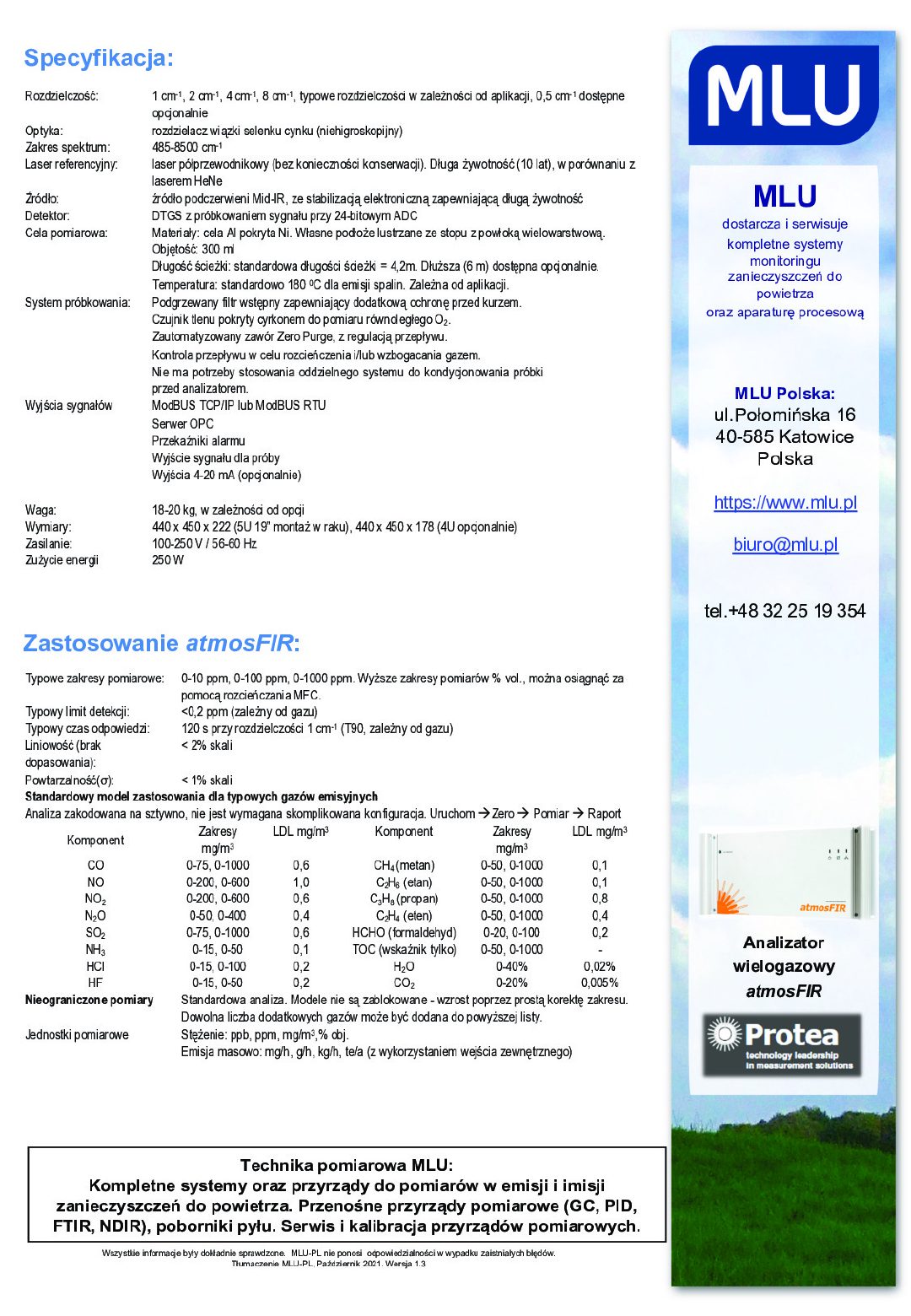 atmosFIR jest najnowszej generacji analizatorem gazów produkowanym przez firmę Protea. Przyrząd ten jest jednym z najbardziej elastycznych produktów analitycznych na rynku. Zawiera solidny i sprawdzony spektrofotometr FTIR o wysokiej rozdzielczości, który zapewnia olbrzymią przepustowość sygnału, niski poziom szumu i dużą dokładność pomiarową.