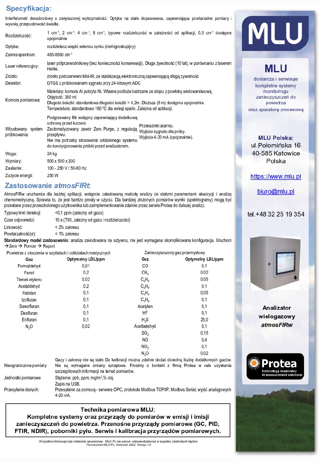 atmosFIR jest najnowszej generacji analizatorem gazów produkowanym przez firmę Protea. Przyrząd ten został wyposażony w najnowszą technologię FTIR i jest jednym z najbardziej elastycznych produktów analitycznych na rynku.