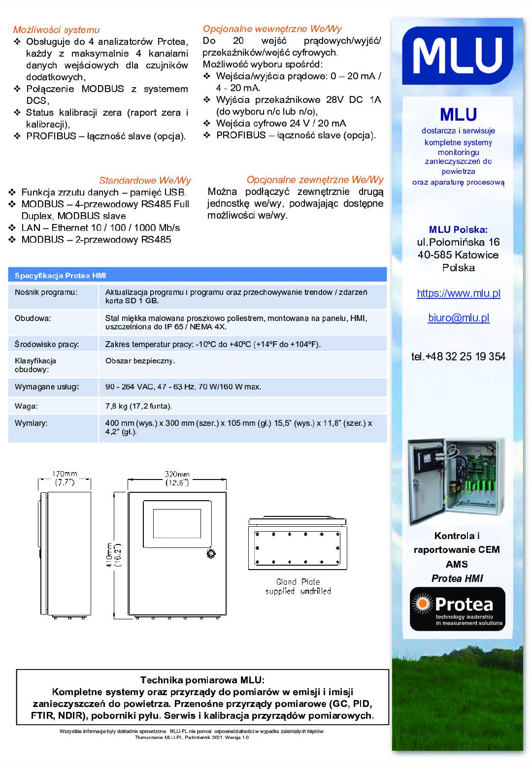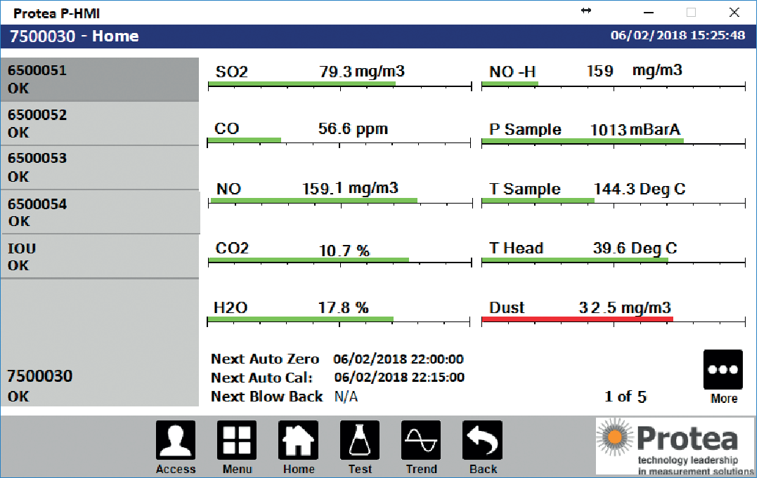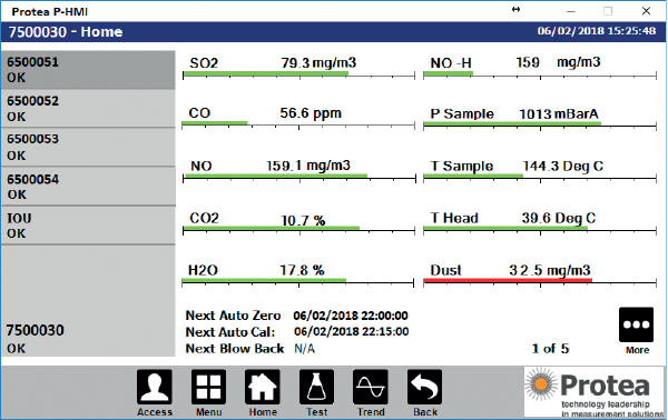 Protea HMI stanowi centrum zaawansowanego ciągłego systemu monitoringu emisji (CEMS). Analizatory oprócz ciągłego zbierania danych emisyjnych, są także skonfigurowane do odbioru danych z urządzeń zewnętrznych np. pyłu, tlenu czy przepływu. Umożliwia to systemowi wyświetlanie stężenia gazu w formie znormalizowanej oraz w razie potrzeby, w jednostkach masy np. kg/h.