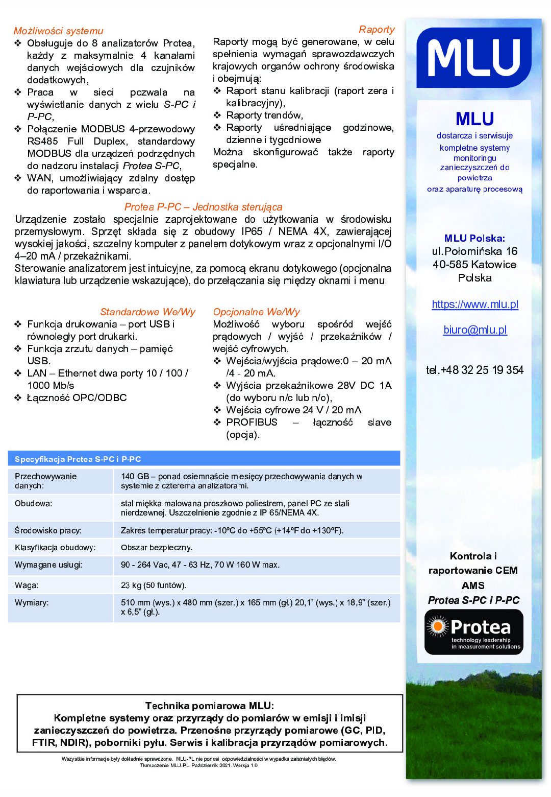 Protea S-PC i P-PC stanowi centrum zaawansowanego ciągłego systemu monitoringu emisji (CEMS). Analizatory oprócz ciągłego zbierania danych emisyjnych, są także skonfigurowane do odbioru danych z urządzeń zewnętrznych np. pyłu, tlenu czy przepływu. Umożliwia to systemowi wyświetlanie stężenia gazu w formie znormalizowanej oraz w razie potrzeby w jednostkach masy np. kg/h. Analizatory komunikują się poprzez złącze szeregowe z komputerem, na którym zainstalowane jest oprogramowanie Protea S-PC.