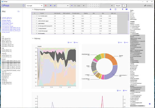 - Eksport wykresów/tabel dla zewnętrznych programów (PNG, SVG, XLSX, DOCX).