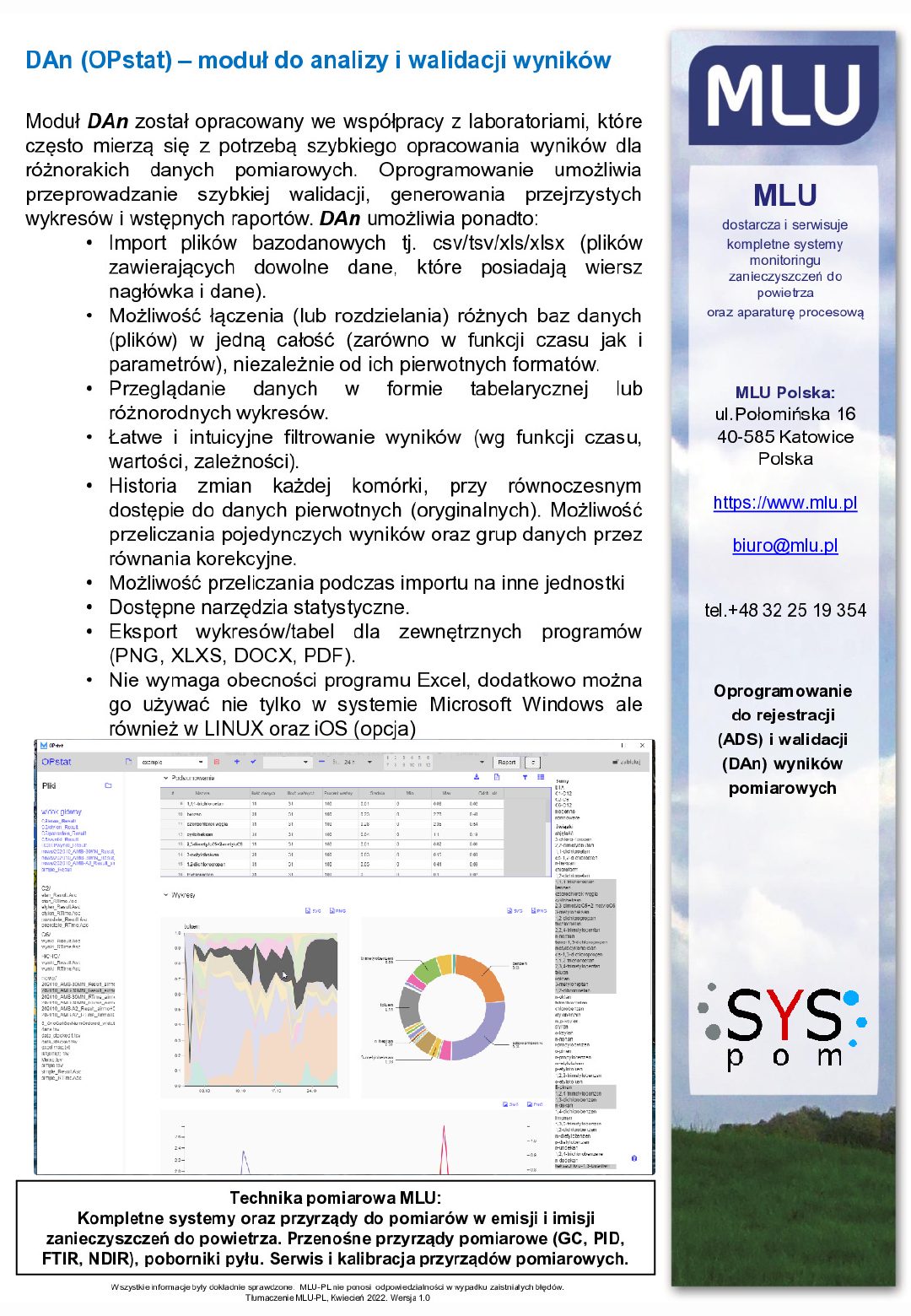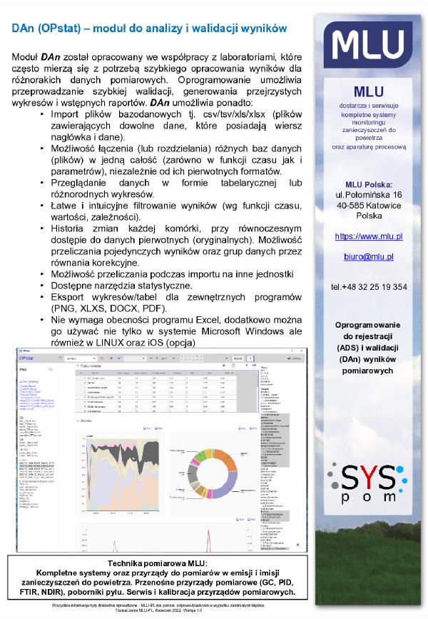 - Moduł DAn został opracowany we współpracy z laboratoriami, które często mierzą się z potrzebą szybkiego opracowania wyników dla różnorakich danych pomiarowych. Oprogramowanie umożliwia przeprowadzanie szybkiej walidacji, generowania przejrzystych wykresów i wstępnych raportów. DAn umożliwia ponadto: